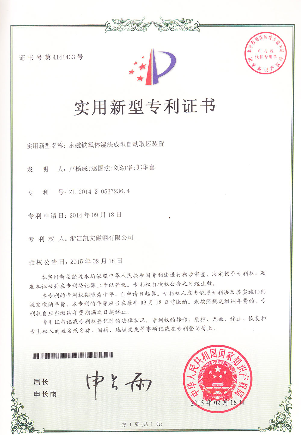 永磁鐵氧體濕法成型自動(dòng)取坯裝置