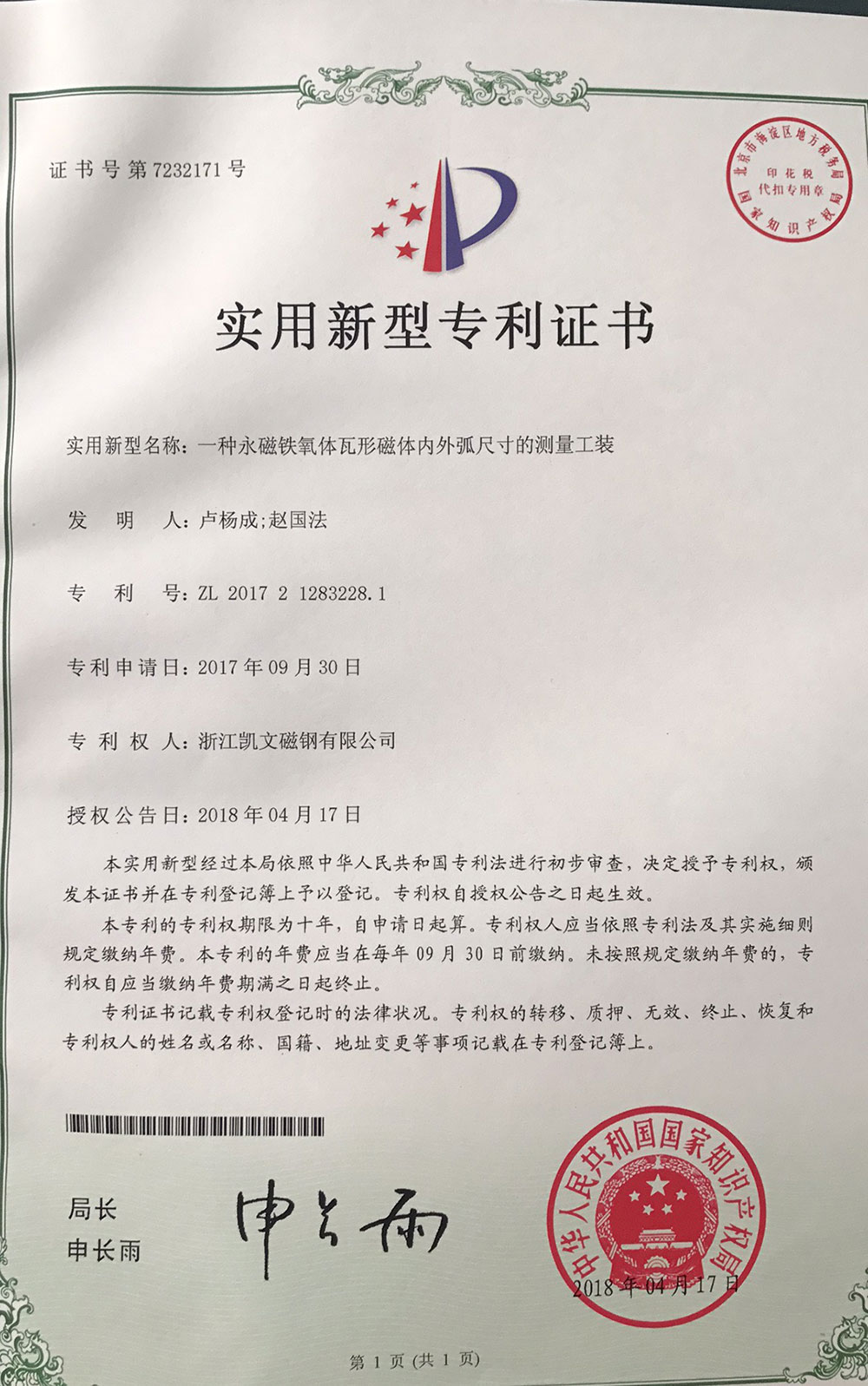 一種永磁鐵氧體瓦形磁體內(nèi)外弧尺寸