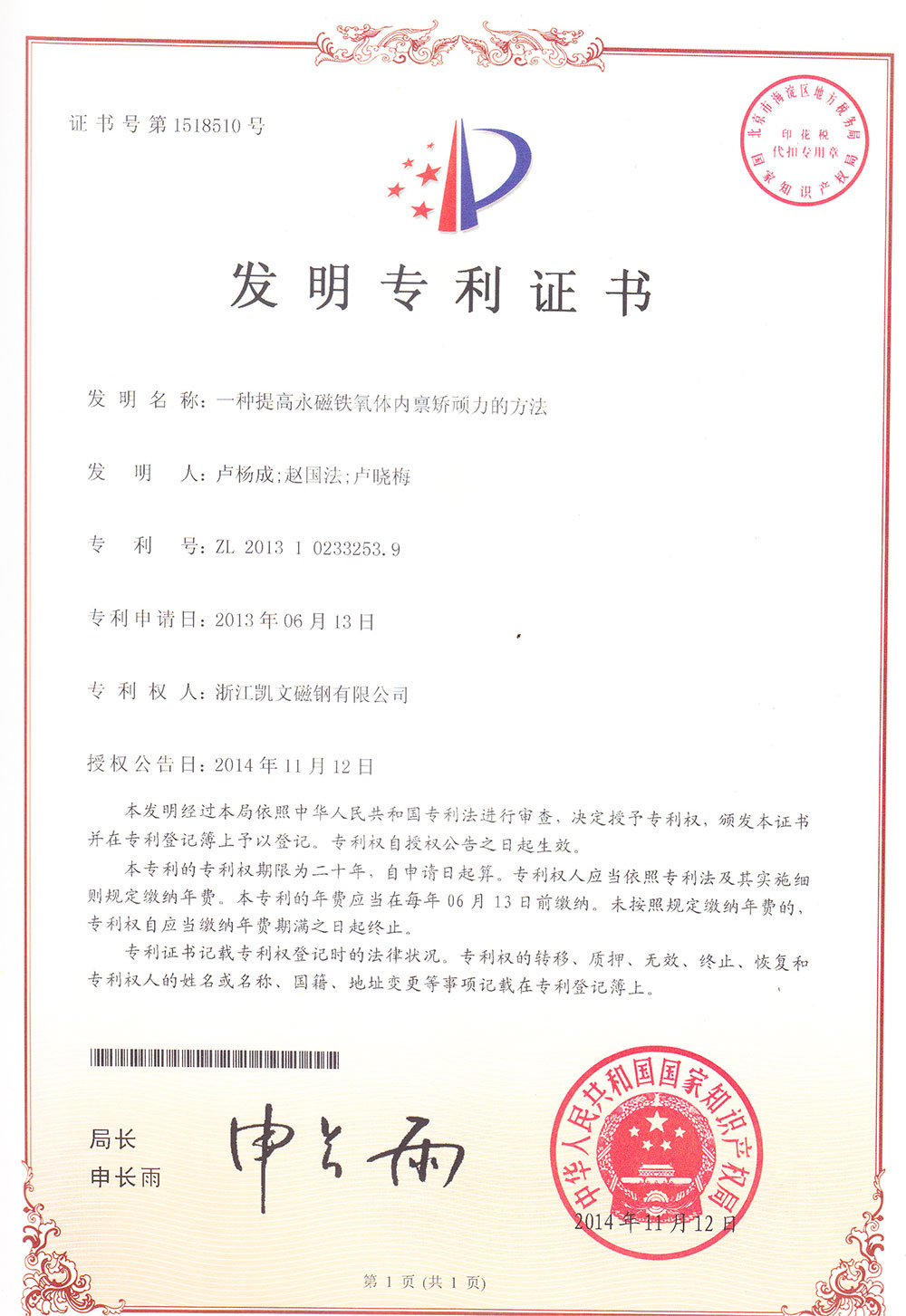 一種提高永磁鐵氧體內(nèi)稟矯頑力的方法